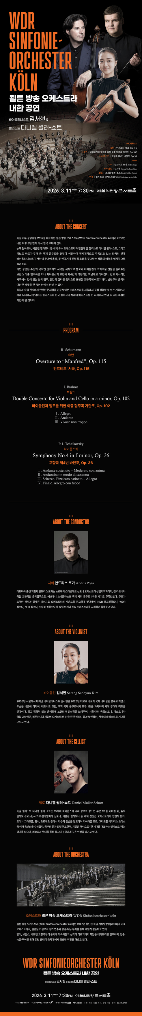 - 2026년 3월 11일 (수) 저녁 7시 30분 서울 예술의전당 콘서트홀