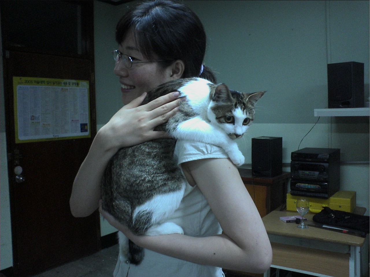 참! 수업중에 학생중 한명이 자기가 키우는 고양이를 가져왔어요.너무 좋았지요! 사진 첨부해봤어요.ㅎㅎ