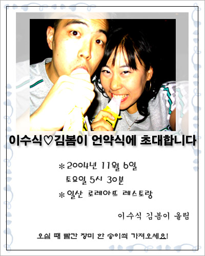참!! 제 약혼자 이름은 이수식입니다(28살이구용)