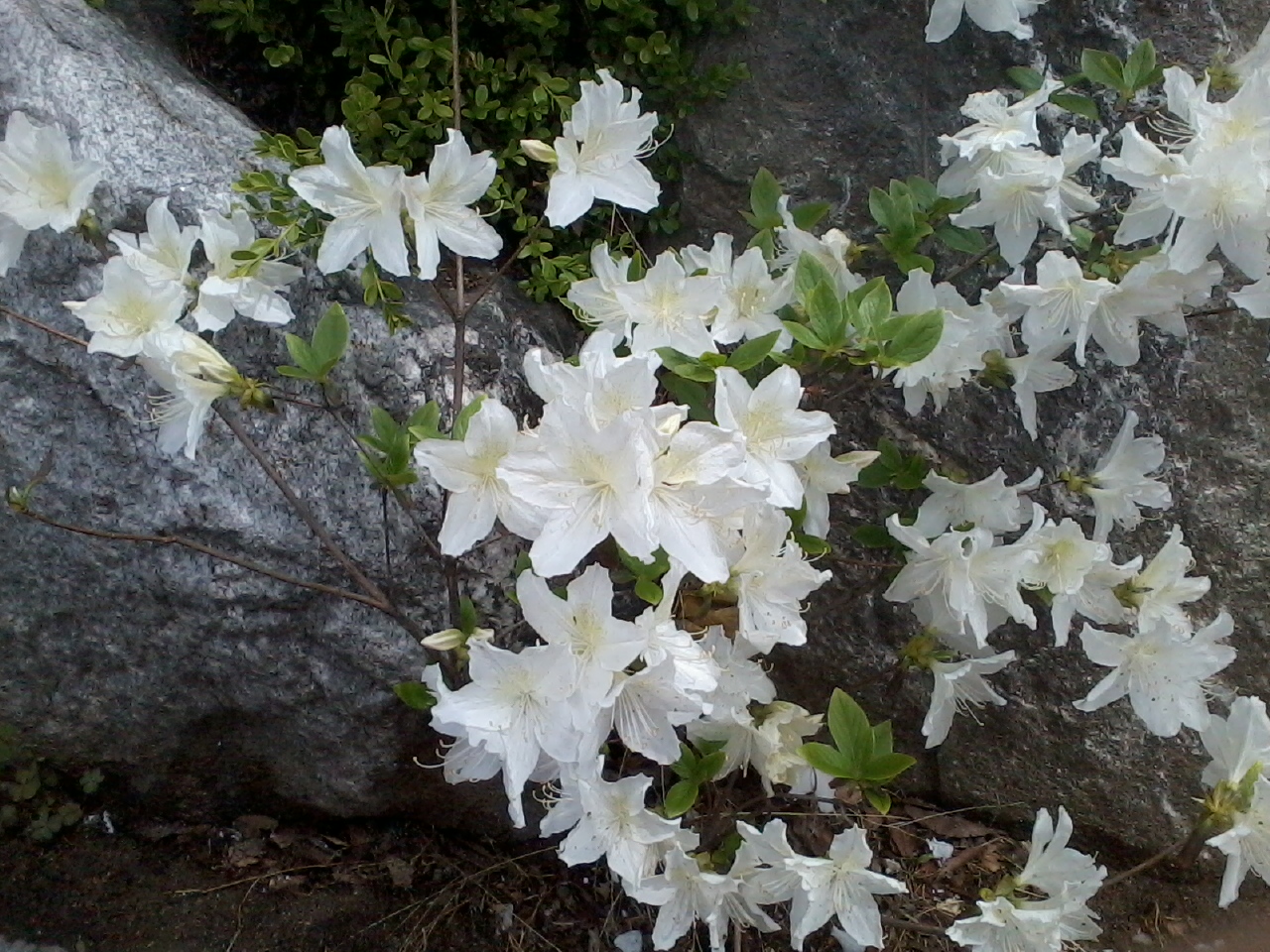 등산길에 이쁜 철쭉꽃들이 돌담 사이를 매우고 있었습니다.