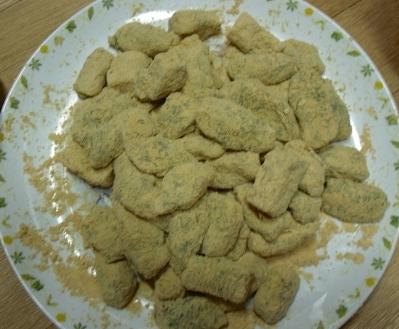 직접 수확하신 콩으로 콩가루 묻혀 만든 쑥떡