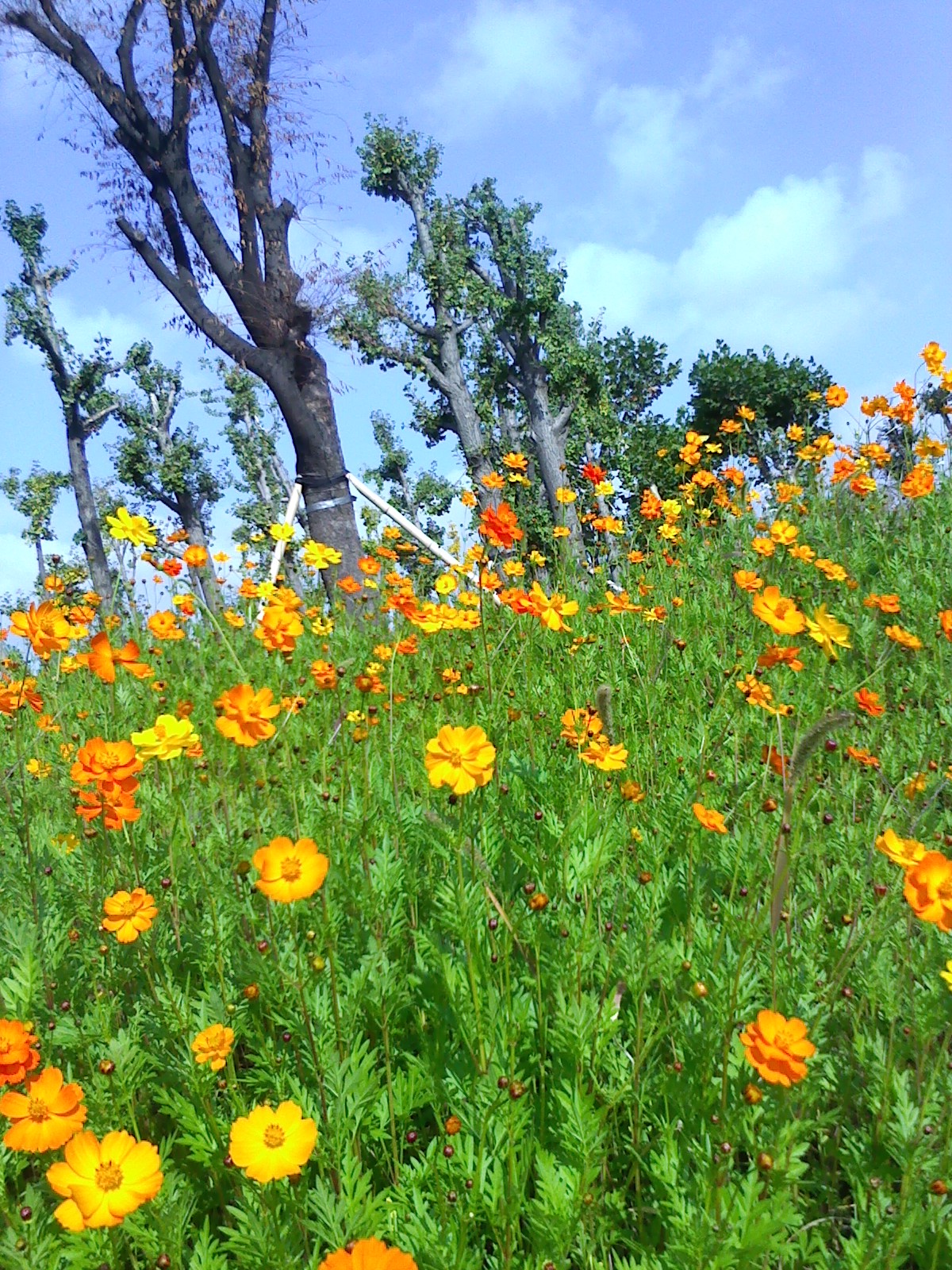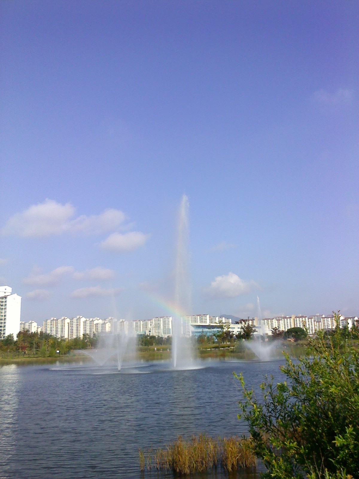 억새밭엔 아직 피지않은 억새지만 운치를 더했구요. 가을 코스모스는 만발해서 푸르른 가을하늘과 더불어 아름다운 풍경을 연출해주고, 물줄기를 뿜어대는 분수속에 떠오른 고운 무지개가 영롱함을 더해주는 공원..도심속에 자리한 공원이지만, 물을 보니 마음이 물빛처럼 잔잔해지는 느낌이었습니다. 이제 고운 단풍이 들어가는 가을산도 더불어 산행을 하면서